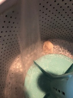 I have to say, I was pleasantly surprised by how clean the load of clothes came out. I still wasn’t convinced though, so I decided to give it the ultimate test: WHITES. The test was made harder since our poodle, Jake, had conveniently thrown up on the white cotton blanket on the bed. (Thanks, Jake.) The soap nuts not only cleaned the whites well, it removed the stain on the blanket!