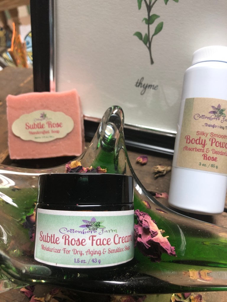 (Rose Soap $6.00, Rose Body Powder $10.00)