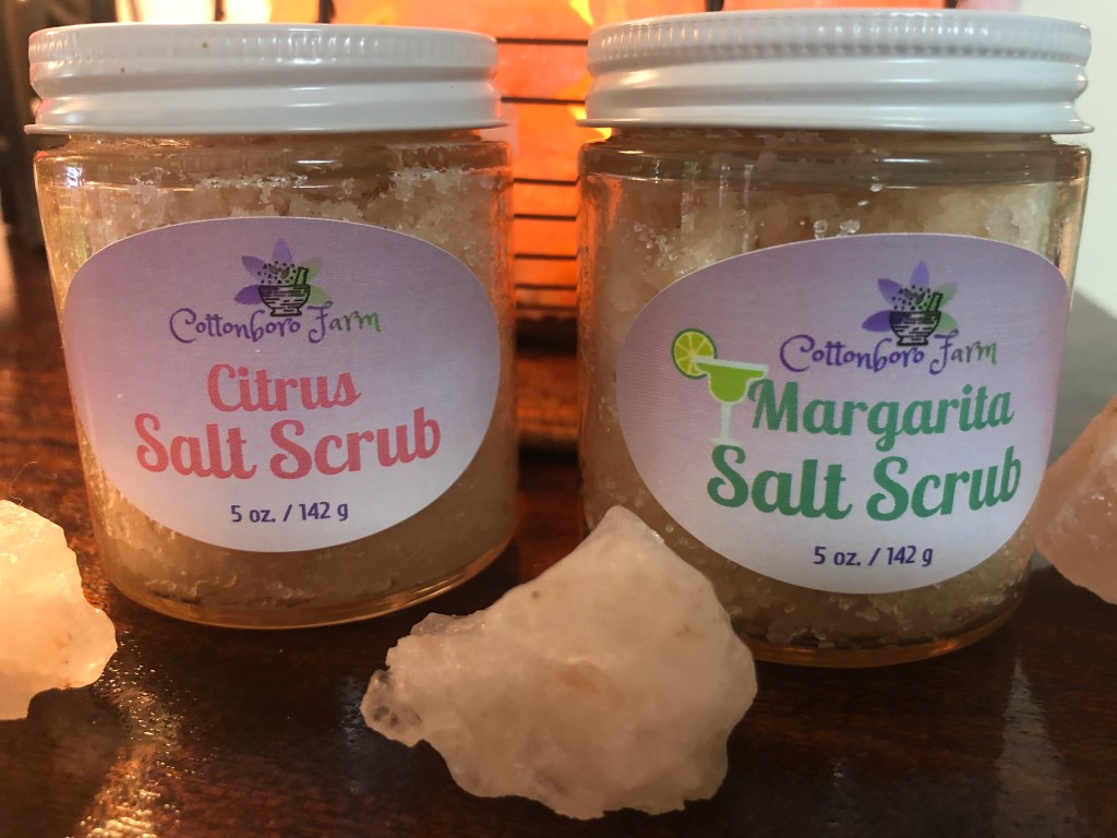 Moisturizing salt scrubs contain Sea Salt, Himalayan Pink Salt, Calendula (Citrus) or Chamomile (Margarita) infused Grapeseed Oil, Almond Oil, Jojoba Oil, Vitamin E. Pure essential oils are added as follows: